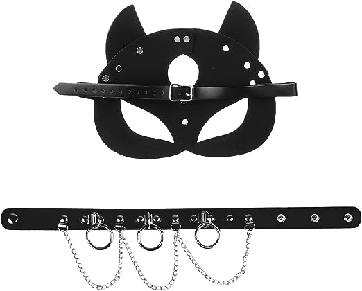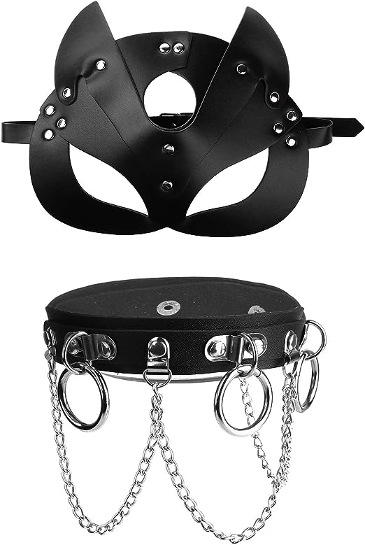 Alvivi Leather Cat Eye Mask and Adjustable Punk O-Rings Chains Choker for Halloween Party Masquerade Cosplay Costume.