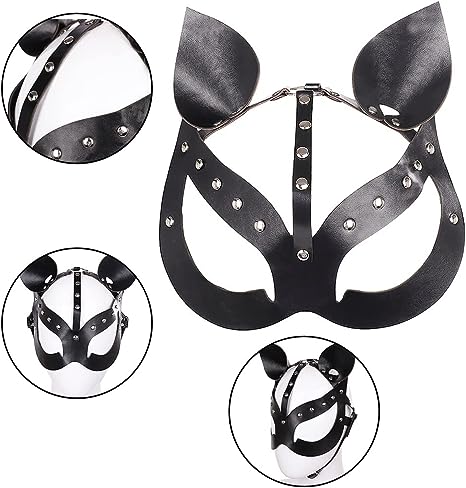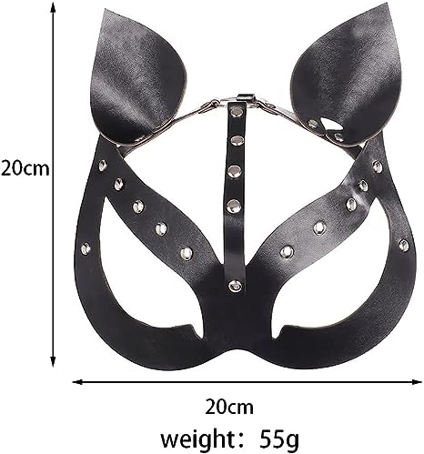 Women Leather Sexy Masks Rivet Mask Halloween Punk Half Face Cat Woman Mask Adjustable Mysterious Masque for Halloween Carnival and Masquerade.