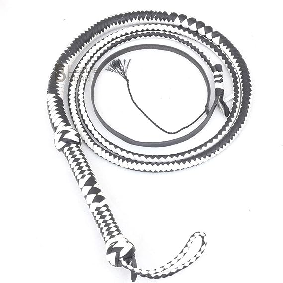 Genuine & Real Cow Hide Leather Bullwhip 12 Plait 10 Foot Bull Whip Black & White