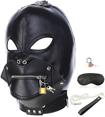 Leather Bondage Gimp Mask Hood, Black Full Face Blindfold Breathable Restraint Head Hood, Sex Toys, for Unisex Adults Couples, BDSM/LGBT Cosplay Restraint Training Toy Halloween Mask.