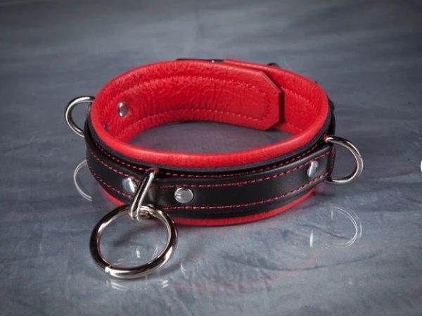 1-1/2” (38mm) Wide Classic Bondage Collar with Side Rings, available in custom colors with locking posts.