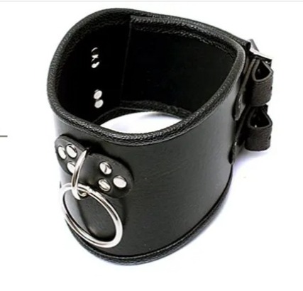 Davidsource Locking Posture O Ring Collar Black Faux Double Leather Neck Belt Adjustable Lockable Choker Collar Restraint Head Harness BDSM Adult Sex Toy