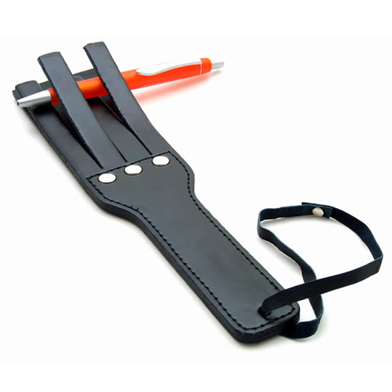 Made from 2 pieces of smooth, yet heavy, latigo leather sewn together with a steel spring inside, this little paddle packs a punch without leaving a big mark, ideal for people who need to be punished but don’t wish for scars or marks to be left behind. It’s able to cover half the bottom just like a real hand. This is also the sort of item that’s ideal for self punishments. If you feel the need to be punished but have no one to do it then this will do a amazing job!